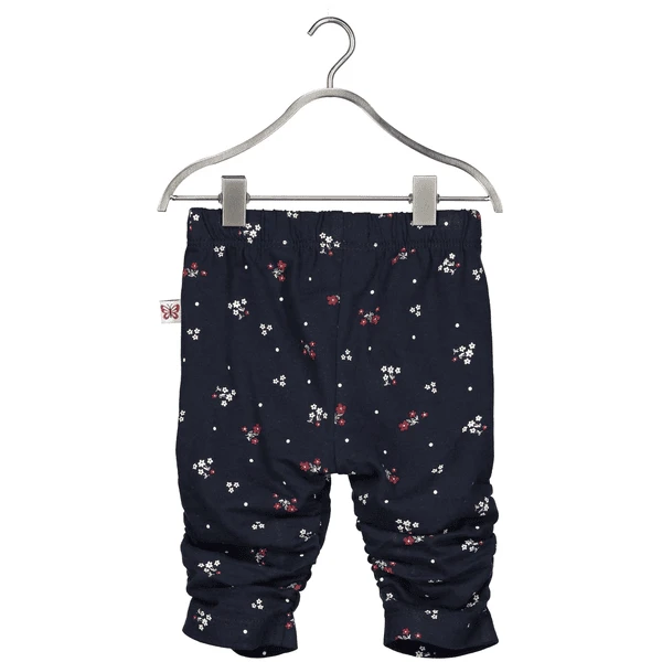 Comfortabele katoenen broek met elastische manchetten en een klein strikje. De broekspijpen zijn verzameld.