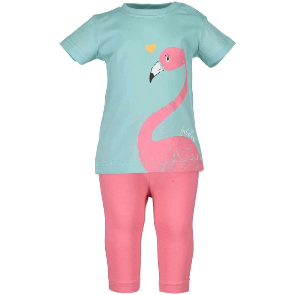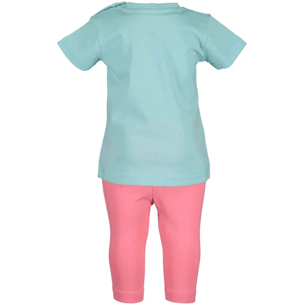 Modieuze set bestaande uit een t-shirt met een cool Print motief en drukknopen op de schouder voor het gemakkelijk aan- en uitkleden. Bijpassende capri-broek met elastische tailleband.