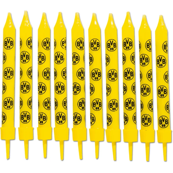 Als u een BORUSSIA DORTMUND fan bent en uw verjaardag in de juiste stijl wilt vieren, dan heeft u deze verjaardagskaarsen van gele was met BVB logo’s absoluut nodig. Bij het uitblazen kun je natuurlijk ook aan de volgende overwinning denken!