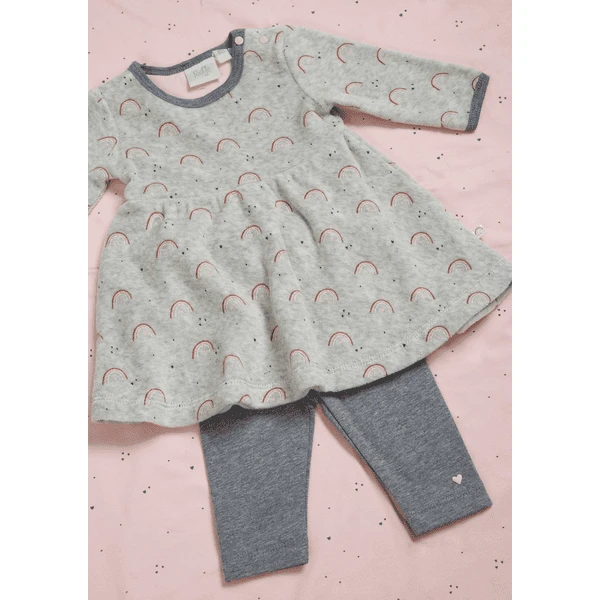 Schattig jurkje in het grijs met Allover print . Je kleine meid is daar altijd mee bezig.
