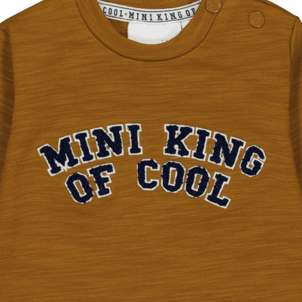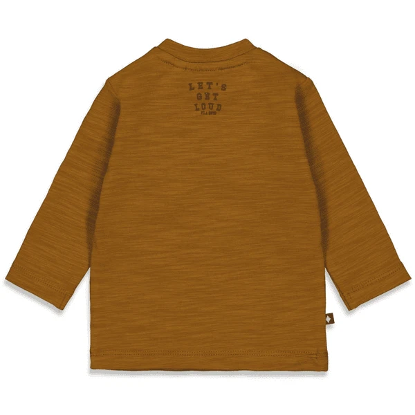 Bruin shirt met lange mouwen en stoer borduursel op de borst. De zachte Single jersey garandeert een comfortabel gevoel. Drukknopen op één schouder maken het gemakkelijk aan en uit te trekken.