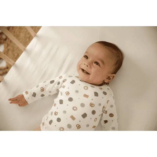Schattig shirt met lange mouwen in wit met kleurrijke Cookie – Allover print . Drukknopen op één schouder maken het gemakkelijk aan en uit te trekken. Het overhemd is gemaakt van 100% katoen en garandeert een comfortabel gevoel.