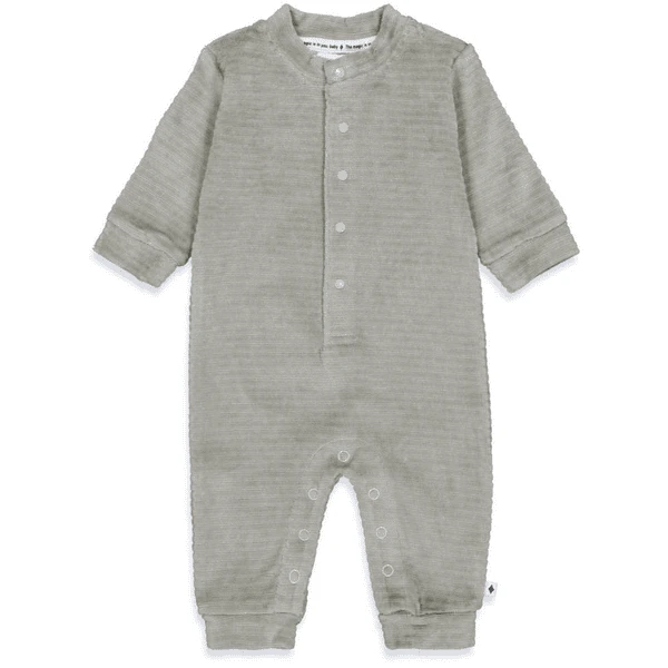 Schattige slaapoverall voor jongens gemaakt van superzacht fluweel. De pyjama heeft drukknopen aan de voorkant en in het kruis om het aan- en uitkleden te vergemakkelijken.
