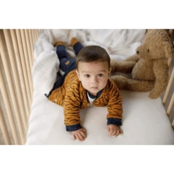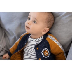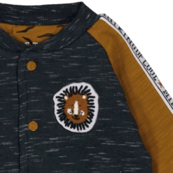 Cool omkeerbaar jack in trendy college stijl met twee verschillende Design s. Aan de ene kant, blauw gevlekt met bruine mouwen en witte accent strepen en een leeuw logo patch op de borst. Aan de andere kant is het een bruin jasje met Tiger strepen en de manchetten zijn in contrasterende kleur. Het jack heeft een drukknoopsluiting over de hele lengte en paspelzakken. Beide kanten zien er leuk uit en kunnen goed gecombineerd worden met verschillende outfits.