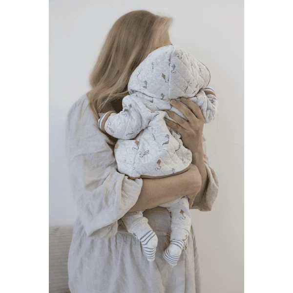 - 1e zijde: Allover print , met sierzakken, doorgestikte look