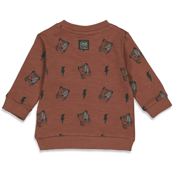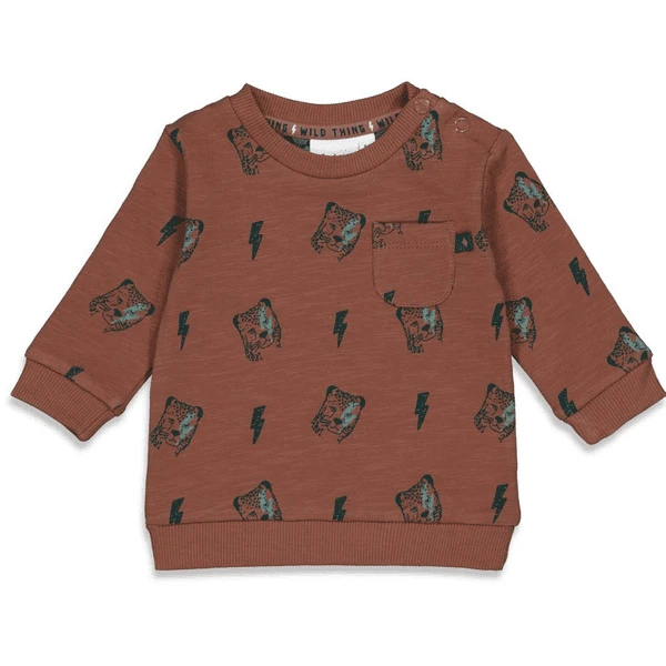 Cool sweatshirt voor jongens met cheetah Allover print . De top heeft een klein borstzakje en zachte geribde zomen. De zachte katoenmix garandeert een comfortabel gevoel. Drukknopen op één schouder maken het gemakkelijk aan en uit te trekken.