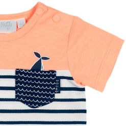 Mooi T-shirt van zacht katoen met grappige strepen en klein borstzakje als blikvanger. Het knoppenpaneel maakt het makkelijk om aan en uit te doen.