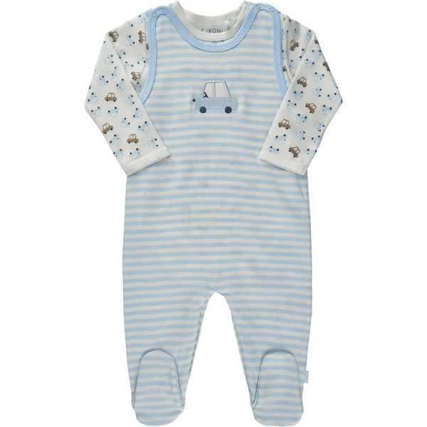 Mooi rompertje met lange mouwen in blauw met leuke streepjes. Een geweldige applicatie geeft een geweldige Design en met drukknopen is het gemakkelijk aan en uit te trekken.