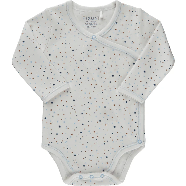 Mooi rompertje met lange mouwen van katoen in wit. Met de drukknoopsluiting is hij makkelijk aan en uit te trekken.