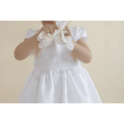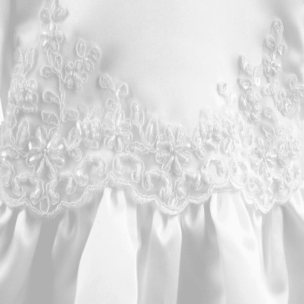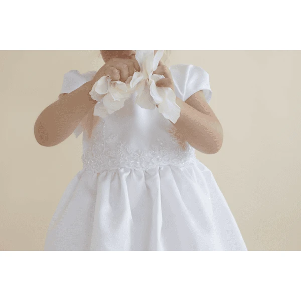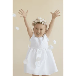Door de delicate parelborduurmotieven wordt deze jurk iets heel bijzonders en voelt uw kleintje zich er als een prinsesje in. Omdat de jurk een beetje is verzameld in de buikzone, krijgt het een mooie vloeiende val.