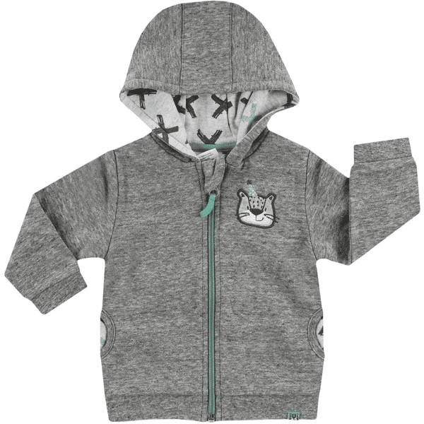 Deze prachtige jas met capuchon en rits zal je inspireren! Er zijn schattige applicaties op de voor- en achterkant en de binnenkant van de kap is bedrukt op allover . Het zachte materiaal sluit goed aan en garandeert uw baby het best mogelijke comfort.