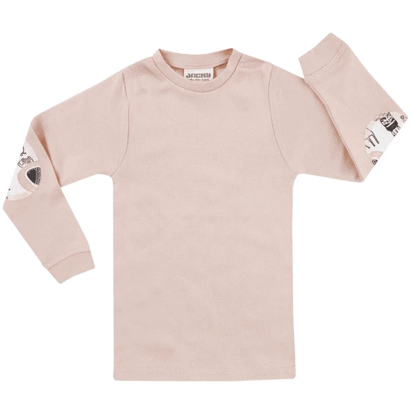 Schattig meisjesondershirt met lange mouwen en kleurrijke elleboogvlekken.