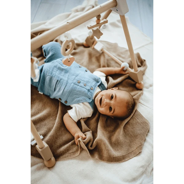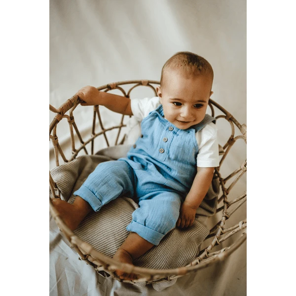 - Modern es Design : De modern e mousseline stof in de kleur blauw is te combineren met vele oufits van je jongen.