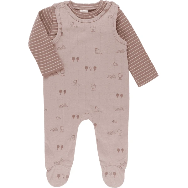 - Complete outfit: De tweedelige set bestaat uit een gestreept shirt met lange mouwen in riblook en een romper met voetjes in tuinbroeklook.