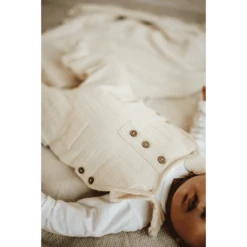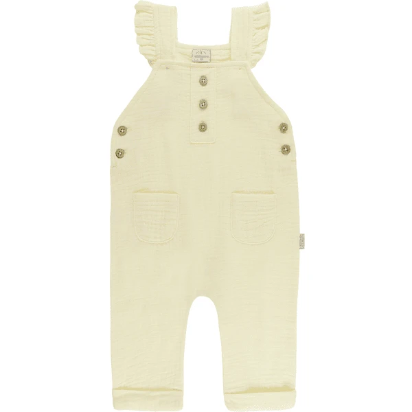 - Aandacht voor detail: Het kleine decoratieve knopenpaneel op de borst, de twee kleine kangoeroezakken op de buik en de volant op de bretels geven de tuinbroek die extra speciale touch.