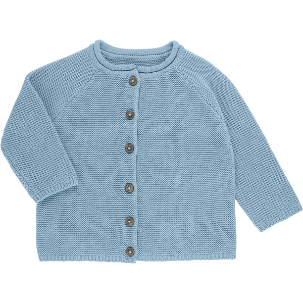 - Modern it Design : De rolzoom aan de halslijn en de knopen completeren de Design in de kleur blauw in grove gebreide look.