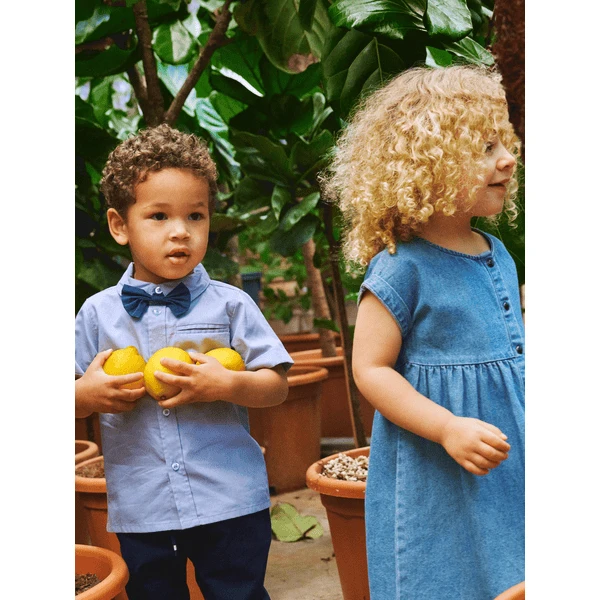 - Denim jurk met ronde hals