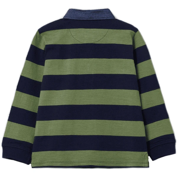 Gestreepte polo van 100% katoen met zijsplitten. De denim kraag en de patch op de borst maken van deze longsleeve een echte blikvanger.