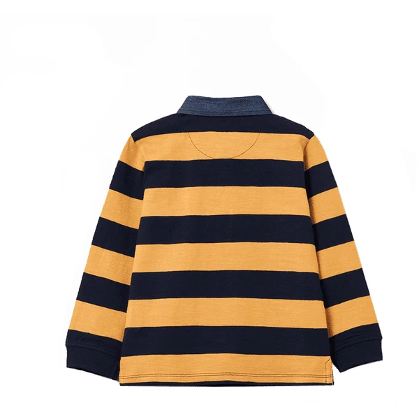 Gestreepte polo van 100% katoen met zijsplitten. De denim kraag en de patch op de borst maken van deze longsleeve een echte blikvanger.