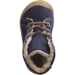 De zachte GEORGIE kinderschoenen zijn ideaal om te leren lopen, want de mooie PEPINO model heeft een uiterst zachte en soepele zool van natuurlijk rubber. Kindervoeten voelen zich helemaal comfortabel in de schoenen door de eenvoudige vetersluiting die door vier ronde oogjes loopt. De comfortabele schoenen zijn gemaakt van echt terra care ® leer, dat ecologisch gelooid is. Binnenin zorgen een behaaglijk warme voering en de Vildona binnenzool, die kan worden uitgenomen om te luchten, voor behaaglijke warmte, zelfs op koude dagen.