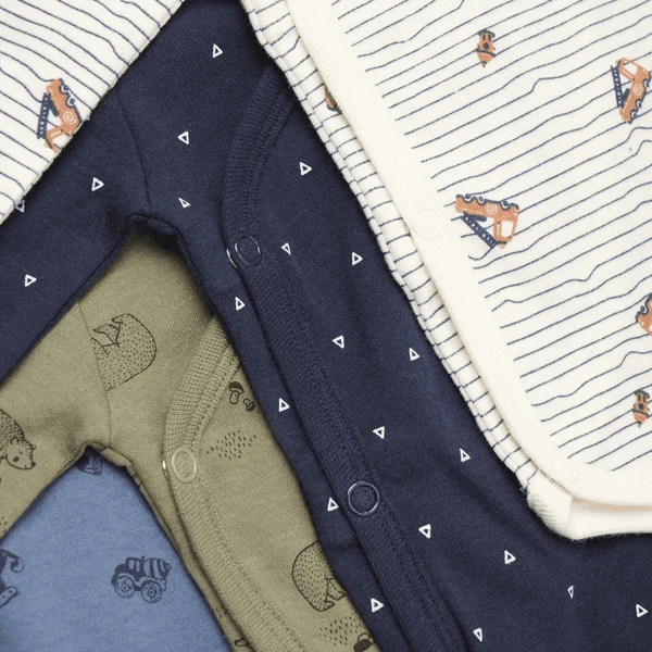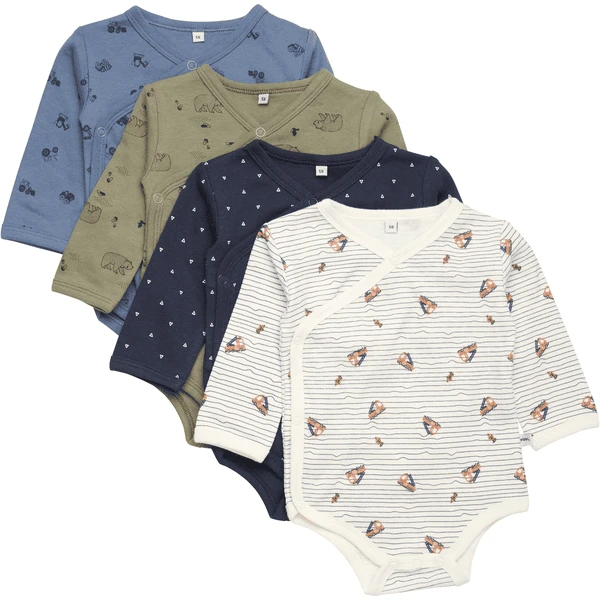 - Set van 4 swaddle rompertjes met lange mouwen.
