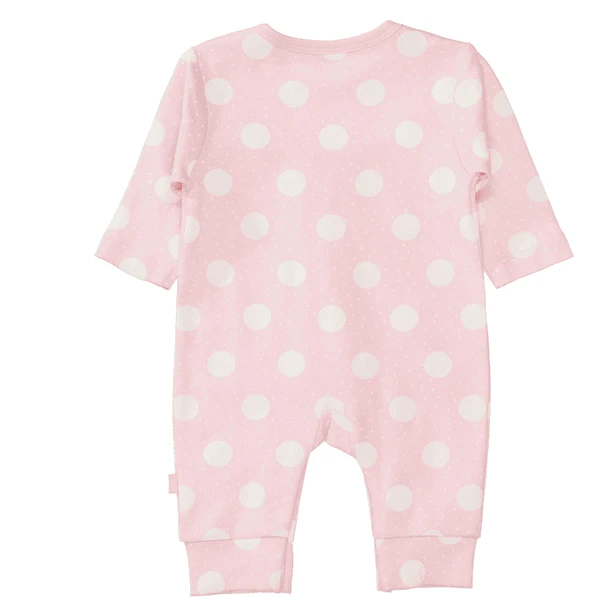 Met deze vrolijke stippeltjesjumpsuit ziet je kleine lieveling er in een mum van tijd superschattig en stijlvol uit. De drukknopen op de schouders en benen maken het makkelijk om aan en uit te trekken.