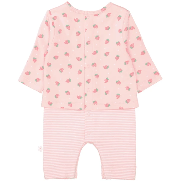 Dit schattige romperpakje van zacht biokatoen overtuigt door zijn hoogwaardige draagcomfort en een schattige aardbeien- Print . De doorlopende drukknopen op de rug en het kruis maken het makkelijk om aan en uit te trekken.