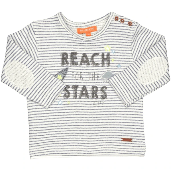 Uw nakomelingen worden meteen verliefd op dit geweldige sweatshirt! De allover stripe look wordt gecompleteerd door de geweldige slogan en patches. Grote blikvangers zijn de elleboogvlekken en de casual layer look. Knoppen in houtlook op de schouder maken het aan- en uitkleden ook gemakkelijker, terwijl het zuivere katoen voor een perfect draagcomfort zorgt. Bijzonderheden: Leren label op de zoom.