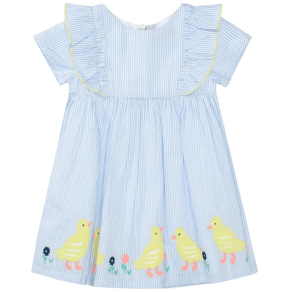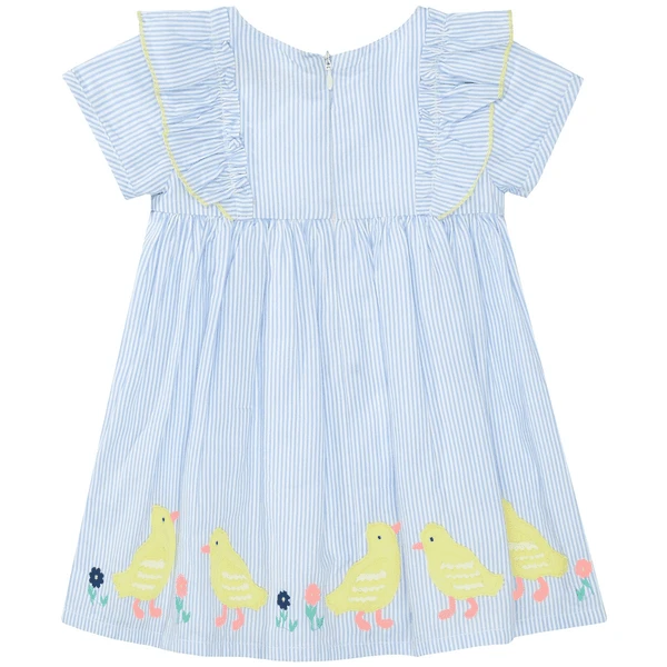 Een Allround hij voor zomerse dagen. Dit mooie jurkje in strepen Design scoort met zoete applicaties en ruches.