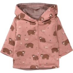 Of het nu schattige beertjes zijn of een simpele streep Design ! Deze leuke omkeerbare jas heeft alles wat je hartje begeert. Door de drukknoopstrip is hij gemakkelijk aan en uit te trekken.