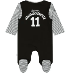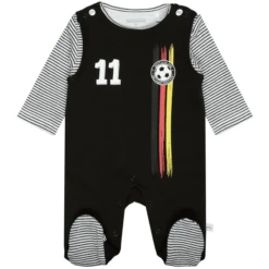 Perfect voor je kleine opkomende voetballer! Met dit schattige setje romperpak en shirt met lange mouwen in de voetbal Design – je lieveling is perfect uitgerust. De drukknopen bij de schouder en het kruis maken het makkelijk om aan en uit te trekken.